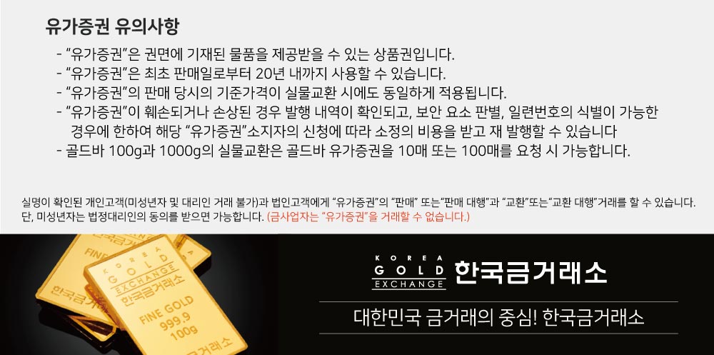 • 한국금거래소 유가증권 골드바 10g(실 판매가는 국제 금값과 환율에 의해 변동됩니다. 아래 고시가와 다를 수 있습니다.)